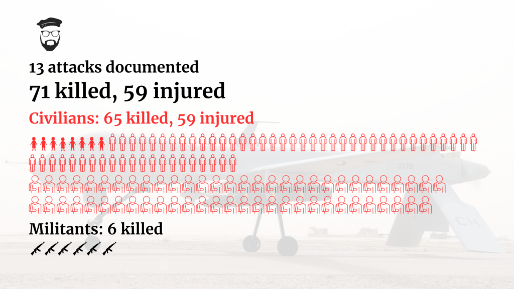 Across the 13 documented attacks, 71 people were killed and 59 were injured.